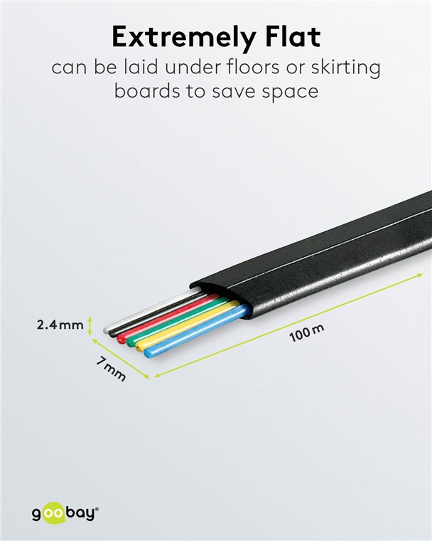 - Możliwość układania np. pod podłogą lub listwami przypodłogowymi w celu zaoszczędzenia miejsca