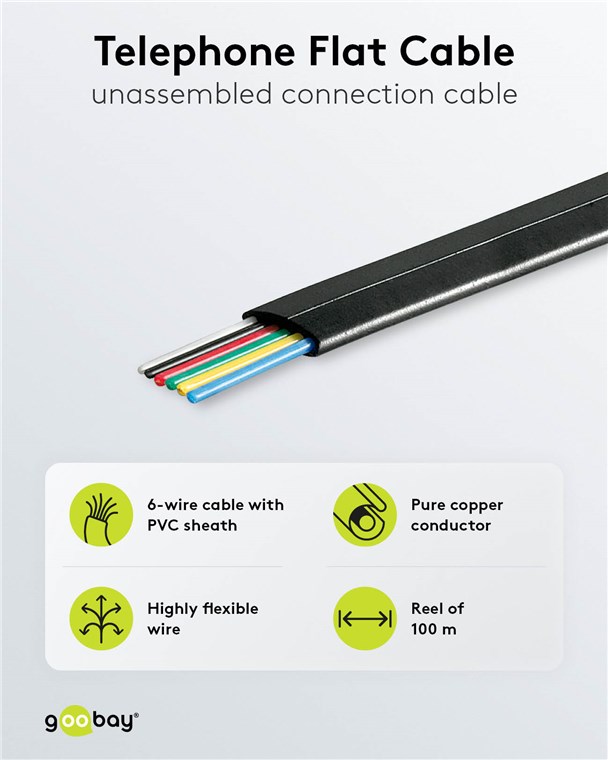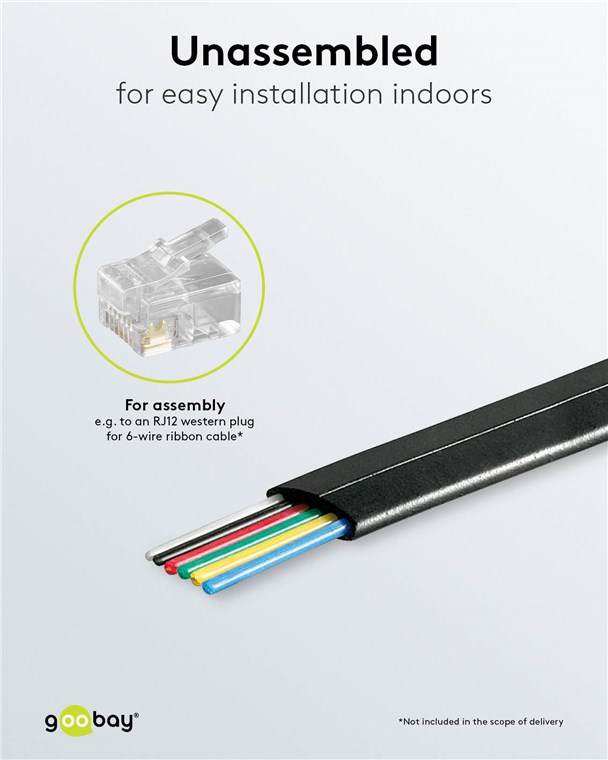 - Wytrzymały płaszcz z PVC optymalnie chroni 6-żyłowy telefoniczny kabel przyłączeniowy przed uszkodzeniem.