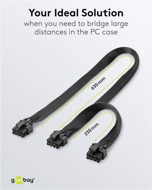 - Kabel zasilający do podłączenia modularnych zasilaczy PC do podwójnych 6-pinowych i 8-pinowych kart graficznych
