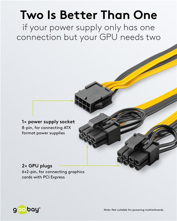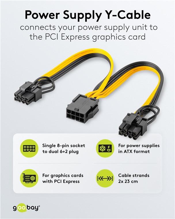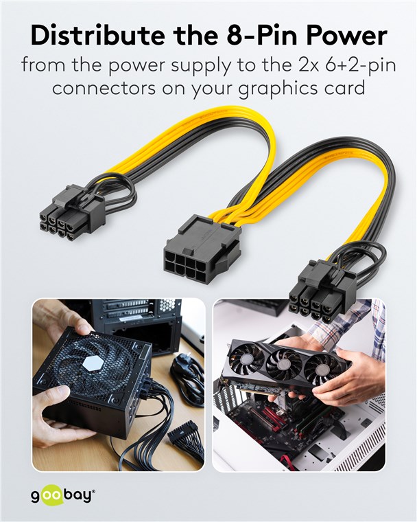 • Kabel zasilający do podłączenia modularnych zasilaczy PC do podwójnych 6-pinowych i 8-pinowych kart graficznych