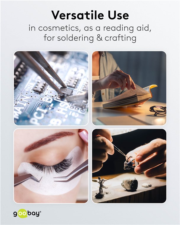 - Lupa robocza do uniwersalnego zastosowania, np. w kosmetyce, jako pomoc w czytaniu lub do prac precyzyjnych, takich jak lutowanie i prace ręczne.
