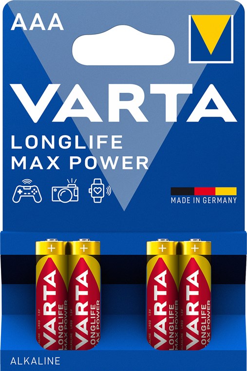 - Nieużywane i zapakowane baterie alkaliczne VARTA AAA pozostają świeże i naładowane nawet przez 10 lat.