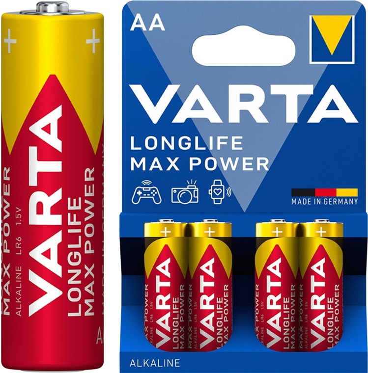 - Nieużywane i zapakowane baterie alkaliczne VARTA AA pozostają świeże i naładowane nawet przez 10 lat.
