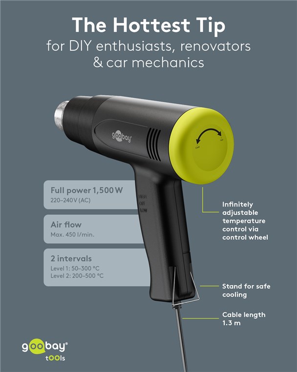 Opalarka jest najgorętszym hitem w dziedzinie majsterkowania. Za pomocą pokrętła można płynnie regulować temperaturę. Dzięki czterem różnym dyszom jest praktycznym pomocnikiem przy wielu pracach naprawczych, np. przy przedłużaniu kabli za pomocą rurki termokurczliwej oraz podczas lutowania i formowania cienkich rur metalowych lub plastikowych.