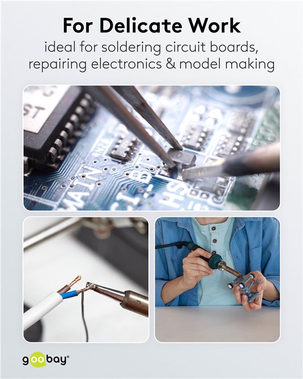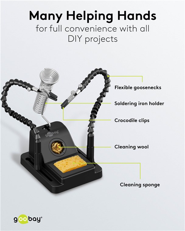 • Praktyczna pomoc lutownicza do wielu precyzyjnych prac i projektów DIY, np. lutowania płytek drukowanych, naprawy biżuterii, tworzenia modeli i malowania
