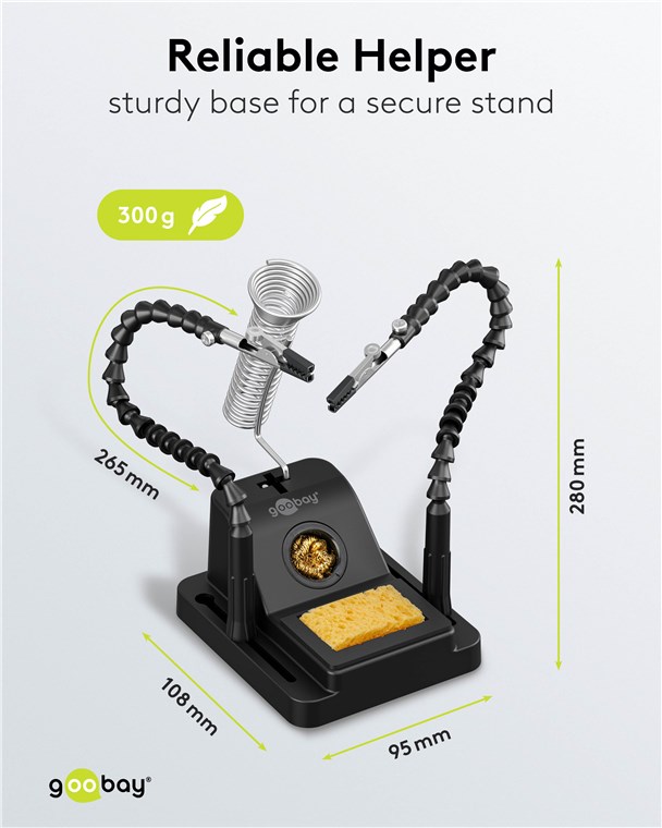 Kompaktowa pomoc lutownicza zapewnia trzecią, czwartą i piątą rękę, których często brakuje podczas lutowania. Unikalna konstrukcja z regulowanymi ramionami na gęsiej szyi i podniesionym uchwytem lutownicy zapewnia maksymalną łatwość obsługi. Łatwa regulacja, precyzyjna praca - dla wszystkich profesjonalistów i hobbystów!