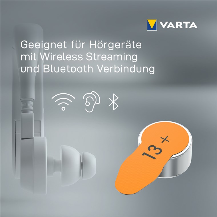 Baterie do aparatów słuchowych typu 13 firmy VARTA z technologią cynkowo-powietrzną są idealne do nowoczesnych aparatów słuchowych. Wydajne baterie charakteryzują się wyjątkowo długą żywotnością i niezawodną funkcjonalnością. Dla większej wygody w codziennym życiu i komunikacji bez przerw i utraty wydajności.