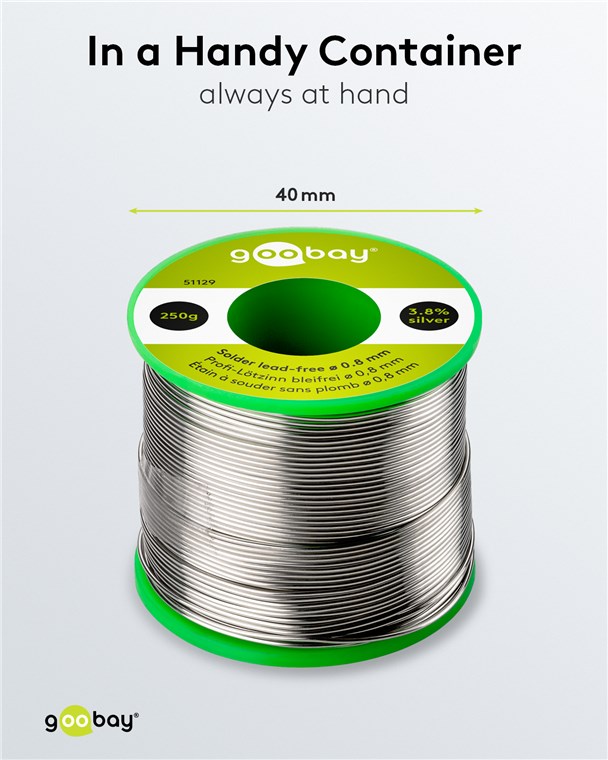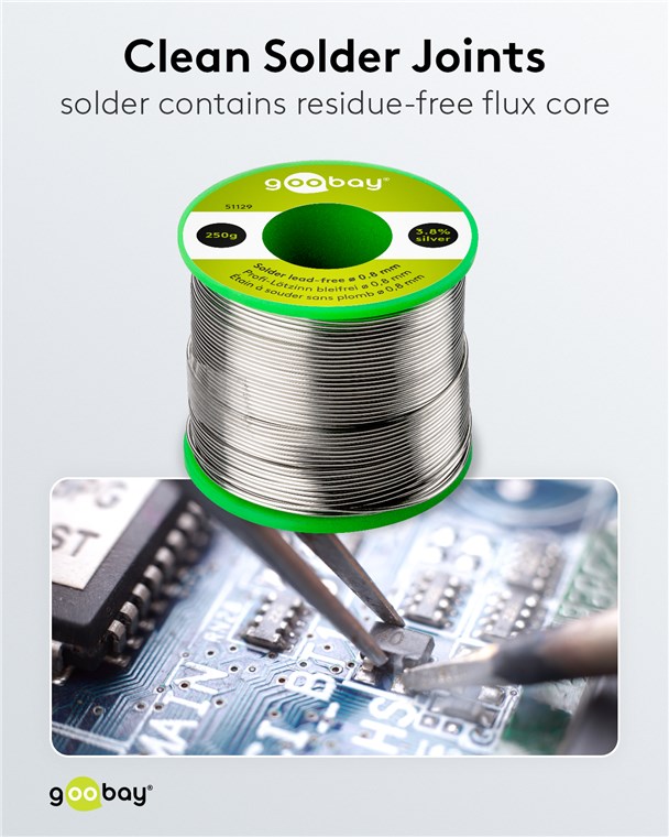 - Drut lutowniczy wypełniony topnikiem o cienkiej średnicy 0,8 mm do szczególnie łatwego dozowania i lutowania delikatnych elementów