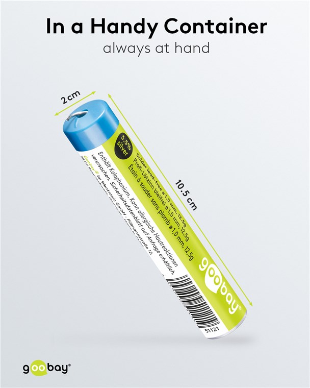 • Drut lutowniczy wypełniony topnikiem o cienkiej średnicy 1 mm do szczególnie łatwego dozowania i lutowania delikatnych elementów