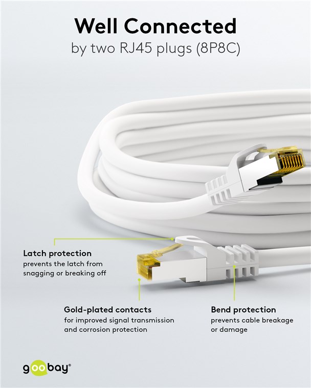 • Zabezpieczenie przed załamaniem i wytrzymała powłoka optymalnie chronią kabel Ethernet przed uszkodzeniem