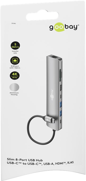 Slim 8-portowy koncentrator USB z HDMI™ i RJ45, 5 Gbit/s