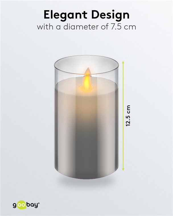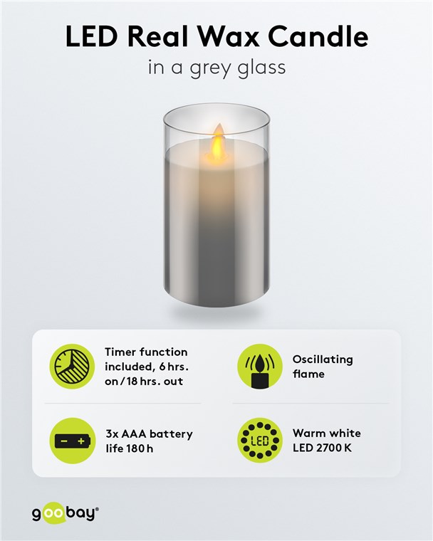 Świeca LED z prawdziwego wosku w szkle, 7,5 x 12,5 cm, szary-przezroczysty