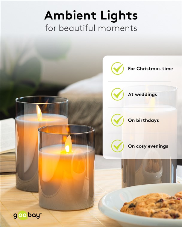 Tradycyjna elegancja prawdziwych świec woskowych spotyka się z nowoczesną, bezpieczną technologią oświetleniową: Dzięki obrotowemu knotowi i woskowej osłonie zestaw świec tworzy ciepłą, harmonijną atmosferę prawdziwych świec – bez wypalania się, sadzenia lub stwarzania zagrożenia pożarowego. Stylowa dekoracja kolacji przez cały rok i magia Adwentu w okresie Bożego Narodzenia – idealna atmosfera na każdą okazję.