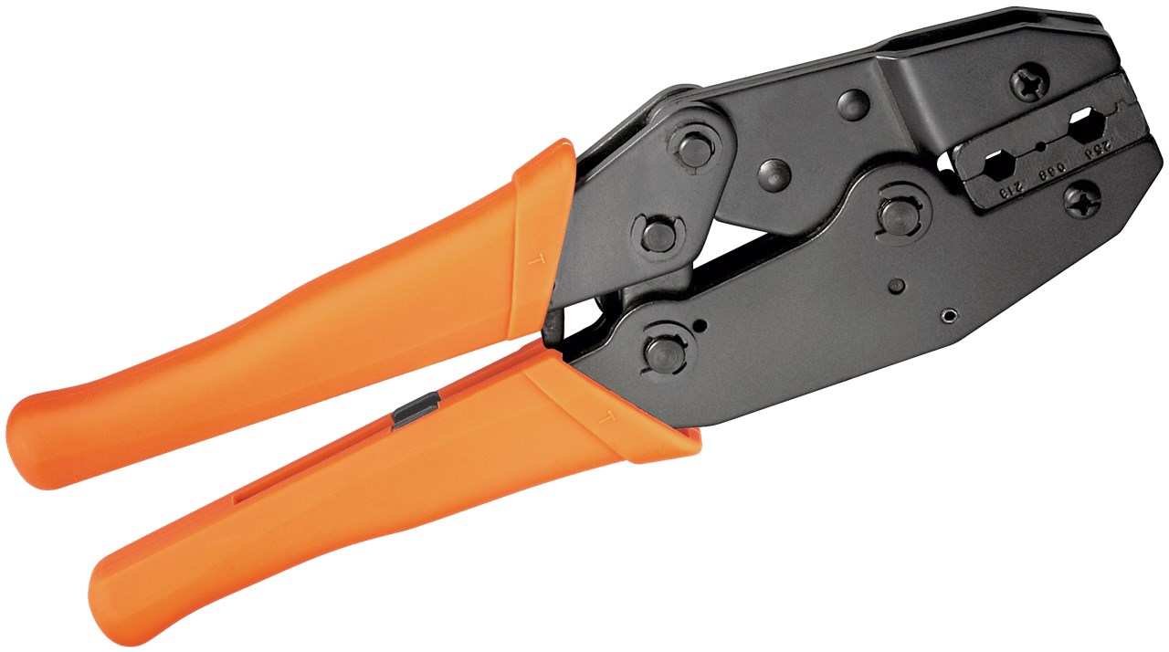 - Z 3 szczękami chwytakowymi do zaciskania końcówek kablowych o średnicach 6,5 mm (0,256 cala), 5,41 mm (0,068 cala) i 1,72 mm (0,213 cala)
