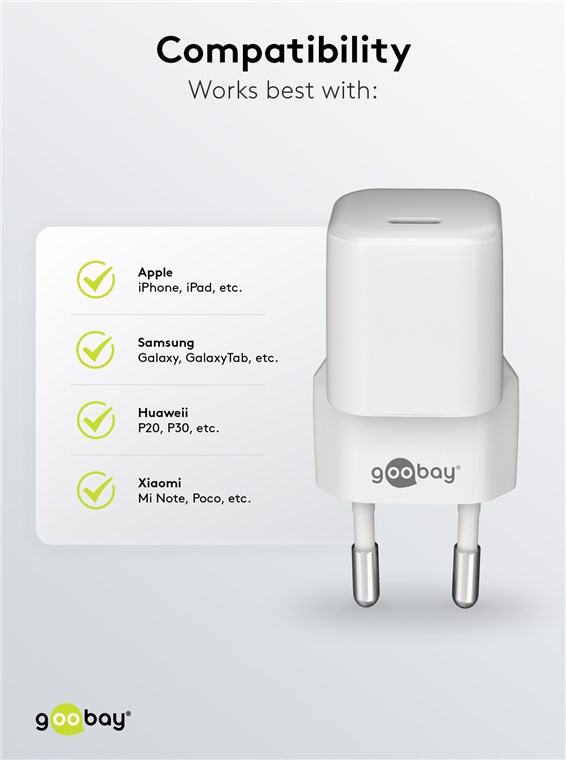 - Moc 20 W sprawia, że adapter do ładowania jest specjalnie dostosowany do małych urządzeń, takich jak smartfony, słuchawki Bluetooth, tablety czy powerbanki