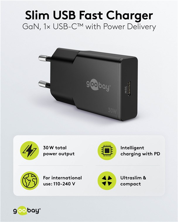 Szybka ładowarka USB-C™ PD GaN Slim (30 W) czarny