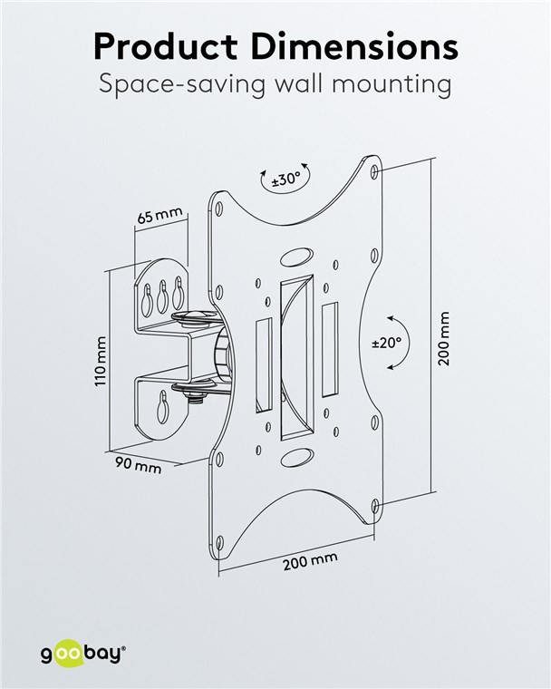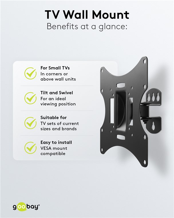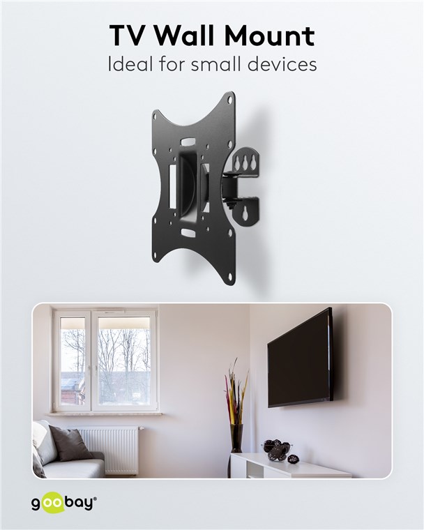 - dzięki głębokości zaledwie 9 cm, idealny dla małych telewizorów we wnękach lub nad szafkami ściennymi, np. w kuchni lub sypialni