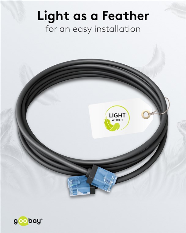 CATegoria sama dla siebie: Super cienkie kable CAT z bardzo krótkimi złączami drastycznie zmniejszają objętość materiału w szafach serwerowych i panelach krosowych - dla znacznie lepszej cyrkulacji powietrza i mniejszego gromadzenia się ciepła niż w przypadku konwencjonalnego okablowania. Ponadto, miękki płaszcz TPE i cienkie miedziane przewodniki zapewniają wyjątkową elastyczność i wydajność materiałową, które sprawiają, że ta generacja kabli jest idealnym partnerem sieciowym.